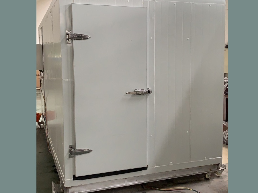 该一体式烘房,采用的热源是空气能闭式除湿烘干系统,不受外界环境温度的影响,南北地域不受限制,温湿度控制更加精确,除湿效果好。