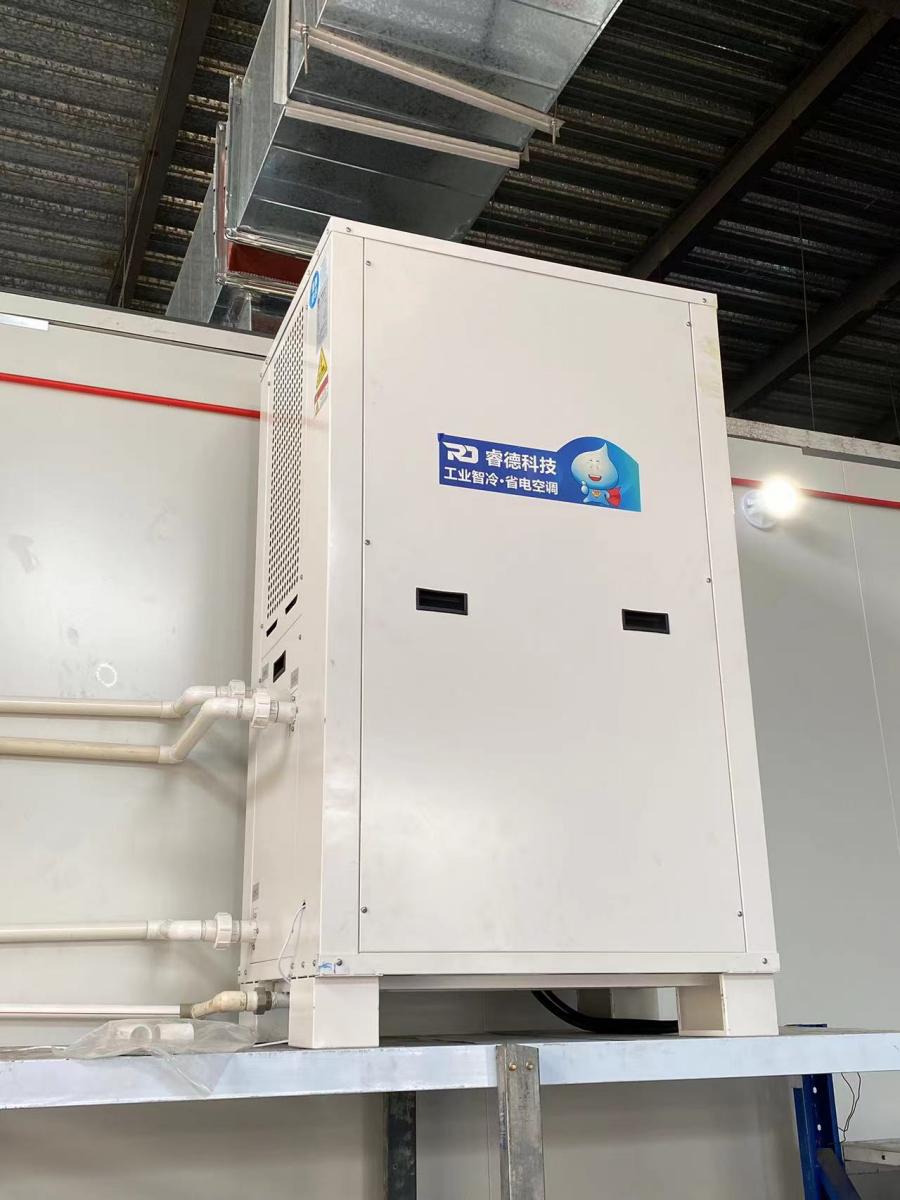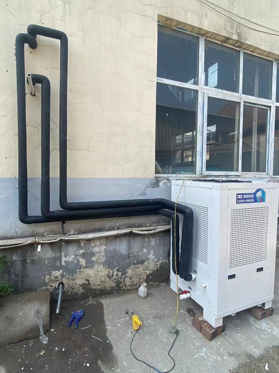 包装车间作业区域集中,安装2台工业空调,配套直吹导风罩设计,可灵活调节送风方向,直吹作业岗位,快速驱散车间热量,既保证制冷效率,又避免冷气扩散浪费,适配包装车间生产需求。