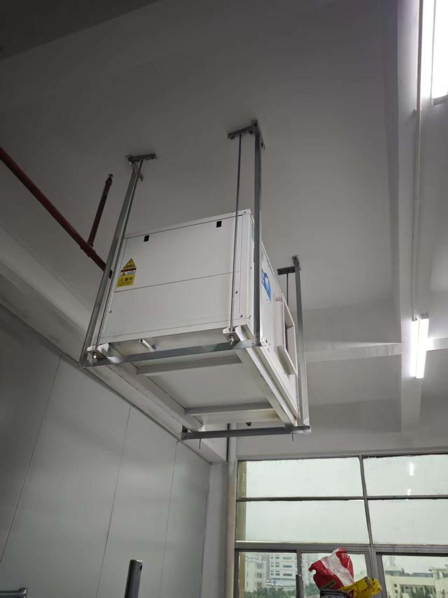 包装车间空间紧凑、作业点位固定,安装2台空调,采用挂式直吹设计,节省地面空间,直吹作业区域,快速降温且风力集中,兼顾节能与制冷实用性,适配包装车间生产场景。