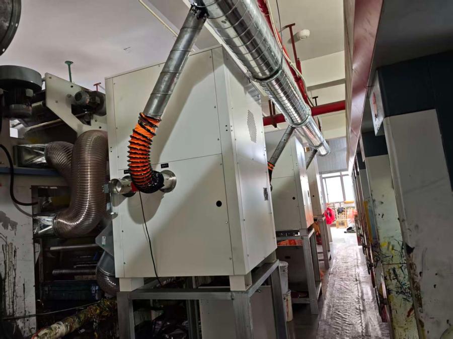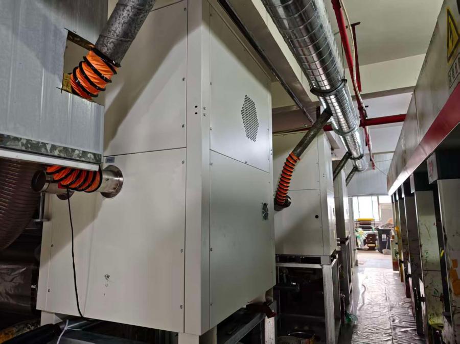 改造内容:第一条7色设备(3台一拖二、1台一拖一);第二条7色设备(3台一拖二,第一色未改造),剩余1台设备预留至后续改造使用; 测试工况:(印刷速度150m/min); 安装组数:暂装6台(不含预留1台); 节能比例:(55%)(对比电加热)